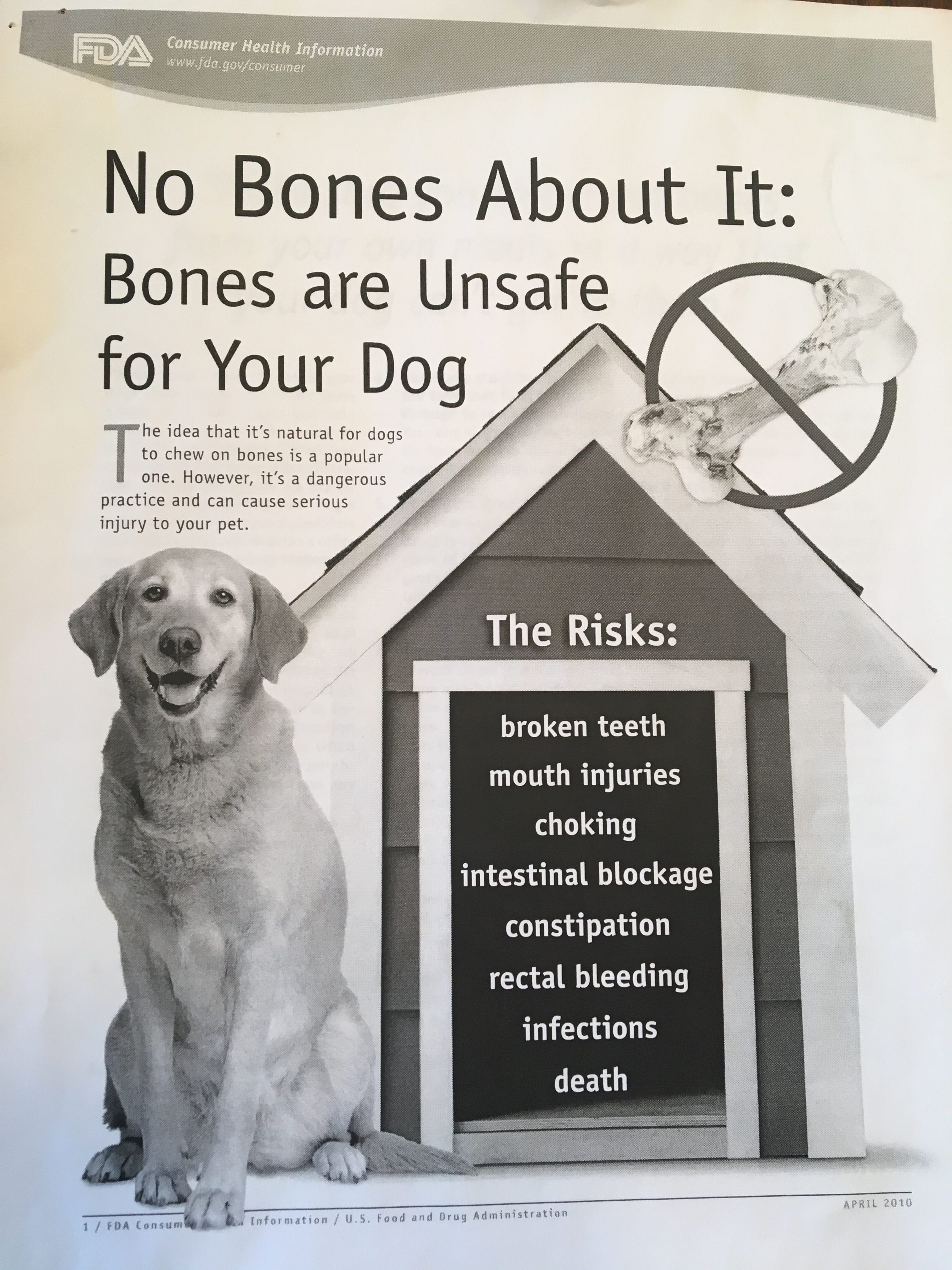 U.S. FDA Consumer Update - No Bones (or Bone Treats) About It: Reasons Not to Give Your Dog BonesEnclosures